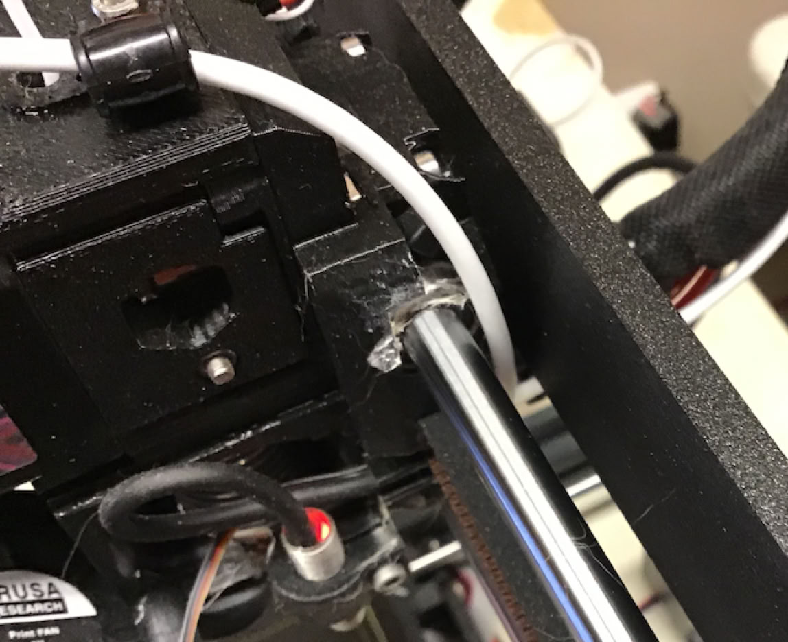 After installing the USB cable as shown above, I ran the extruder up to 210 mm (the top position) and you can see in the photos below how the cable did not interfere at all.