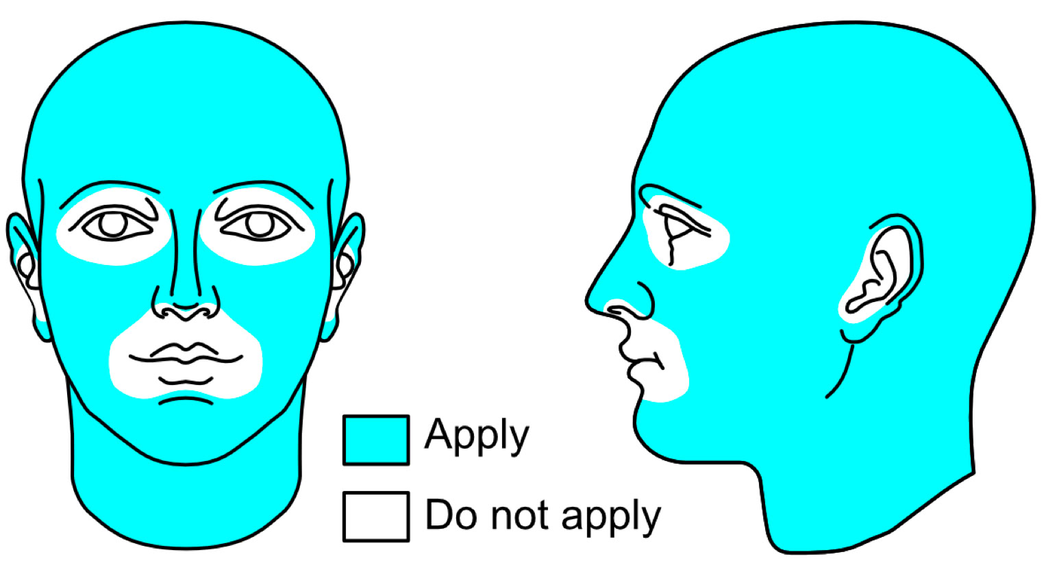 With adults it is usually applied from the jawline on down.