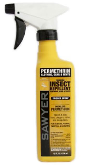 Meanwhile, Sawyer's and other companies make sprays which you can apply to your clothes, tents or anything cloth. It's easier than going through the whole soaking routine anyway! If you’re interested in soaking, you can download instructions for mixing up 1/2% permethrin from concentrate here.